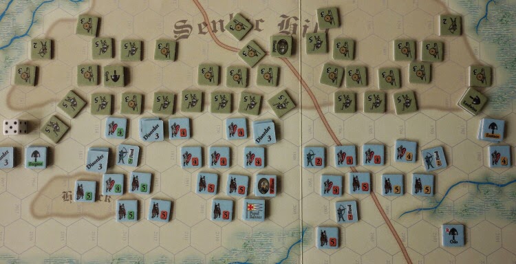 William attacks (a sure sign that things are desperate), he takes the casualty test and survives. In today's game, leaders have been very involved in combat and always survived - that is not very typical of the system (or my usual luck!), there are frequently leader losses in most games.
